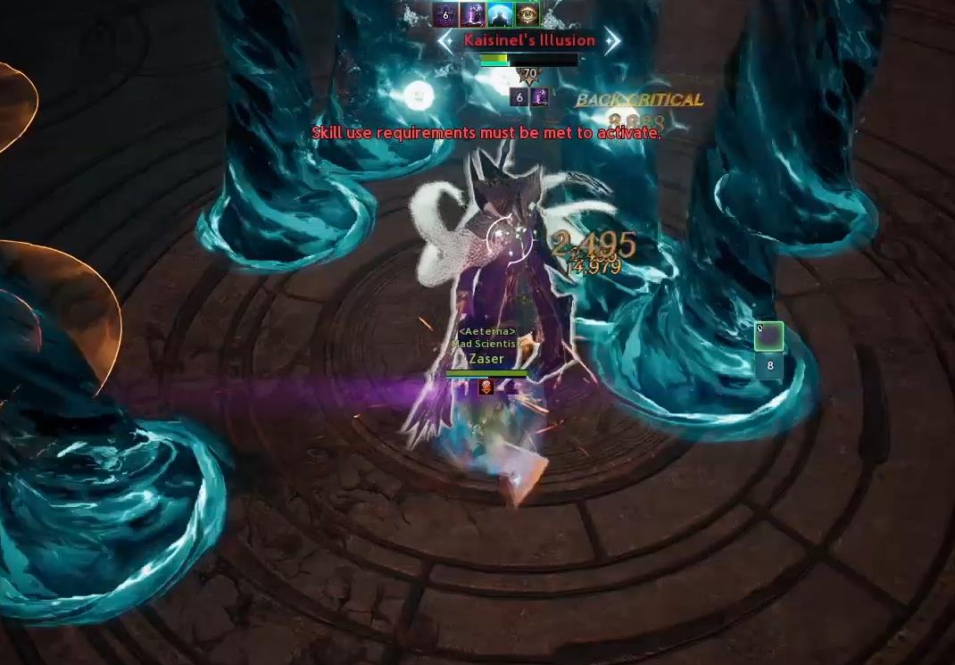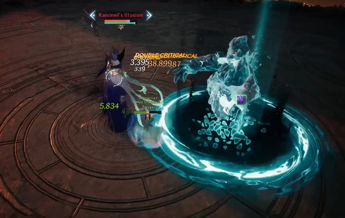 Kaisinel teleports to a player and begins a circular AoE attack around himself.