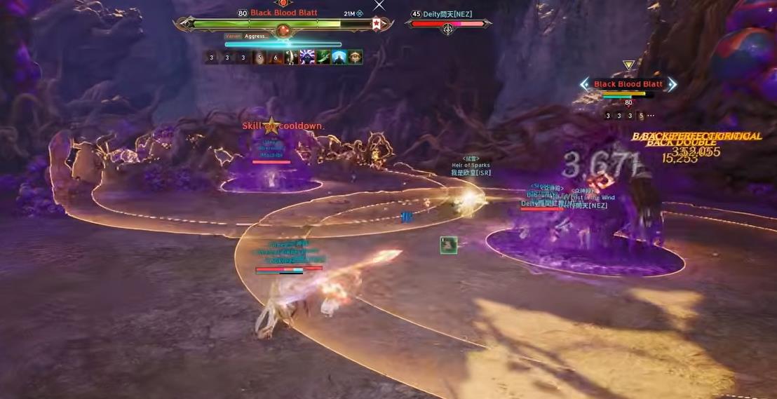 - The boss performs two powerful AoE attacks one after the other, the first in a semicircle, the second in a circle - they can be blocked, dodged, or you can move out of the damage zone. These attacks also apply poison, so be careful.